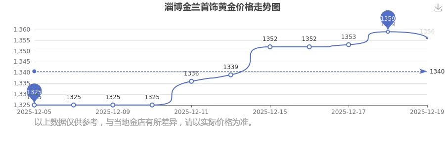 2025年12月21日,淄博金蘭首飾的黃金價(jià)格標(biāo)價(jià)達(dá)到 1356.0元/克。