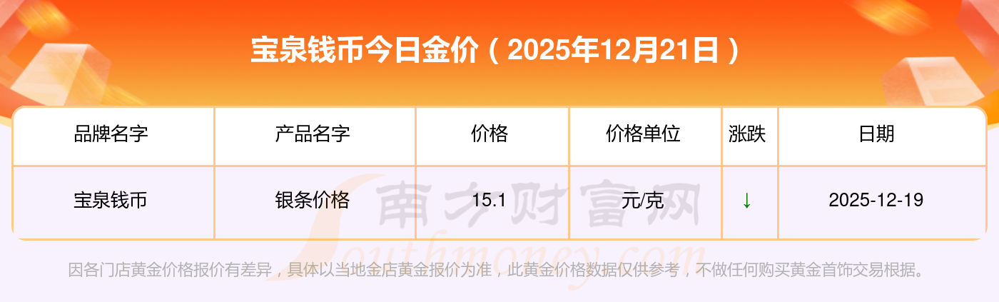 寶泉錢幣今天的黃金價(jià)值幾何?詳情如下: