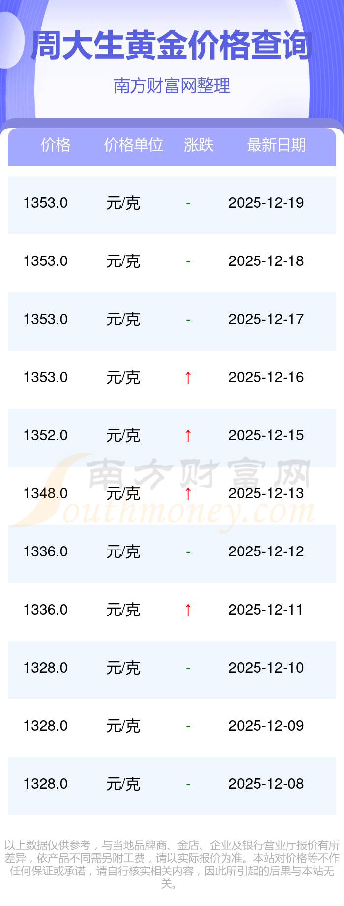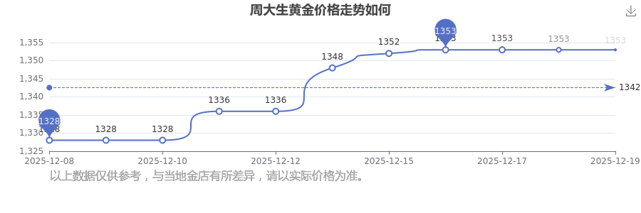 2025年12月21日周大生黃金價(jià)格為1353.0元/克。