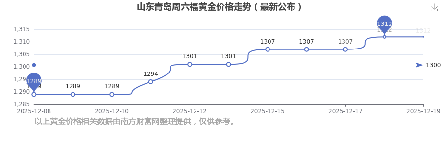 今日山東青島周六福黃金價格最新價格是1312.0元/克。