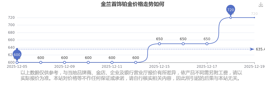 金蘭首飾 鉑金價(jià)格于今日的最新掛牌價(jià)為720.0元/克。