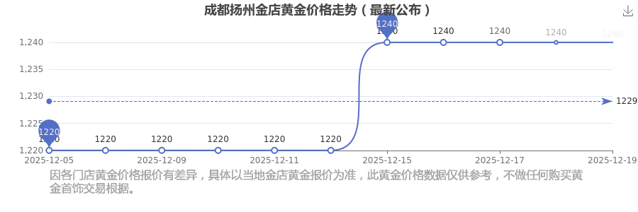 2025年12月21日當(dāng)天,成都揚州金店黃金價格的單價是 1240.0元/克。