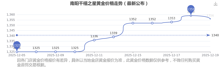 南陽千禧之星 2025年12月21日的黃金價格價位為 1356.0元/克。