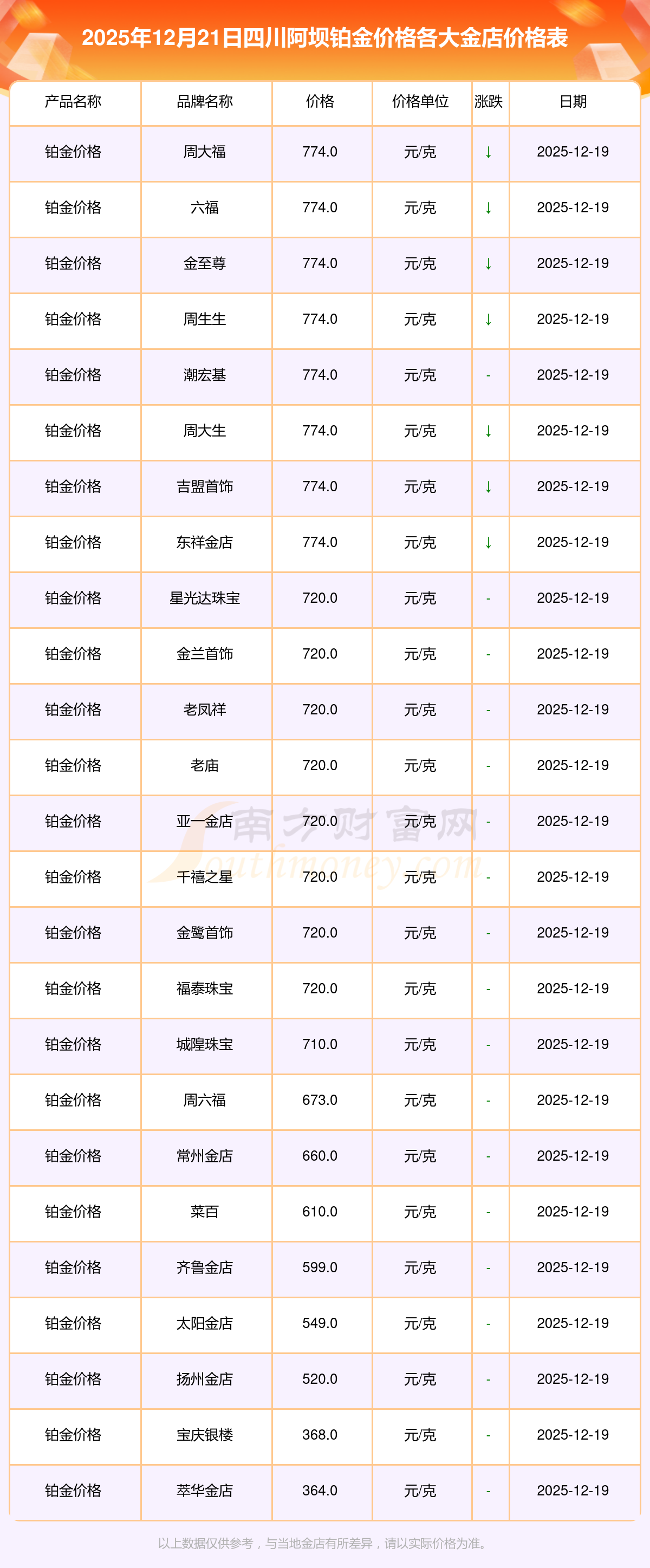 一、四川阿壩各金店鉑金價(jià)格表來了