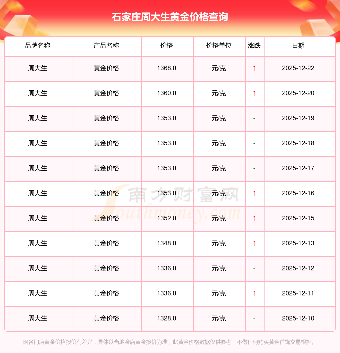 以上數(shù)據(jù)僅供參考,與當(dāng)?shù)亟鸬暧兴町悾堃詫嶋H價格為準(zhǔn)。