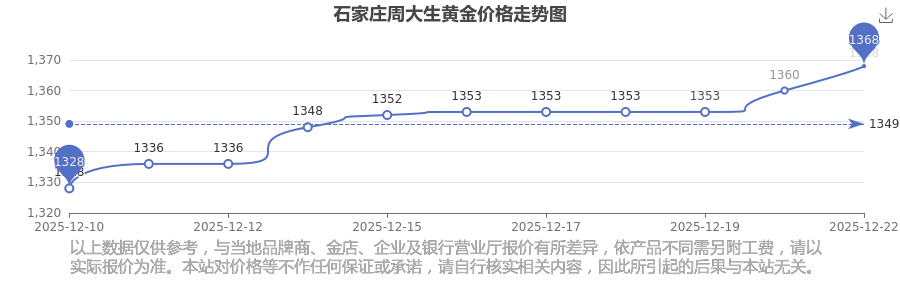 石家莊周大生黃金價格在 2025年12月22日為 1368.0元/克。