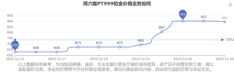 2025年12月26日周六,F(xiàn)在PT999鉑金價(jià)格多少一克呢?(今日PT999鉑金價(jià)格表),一起來看看吧!