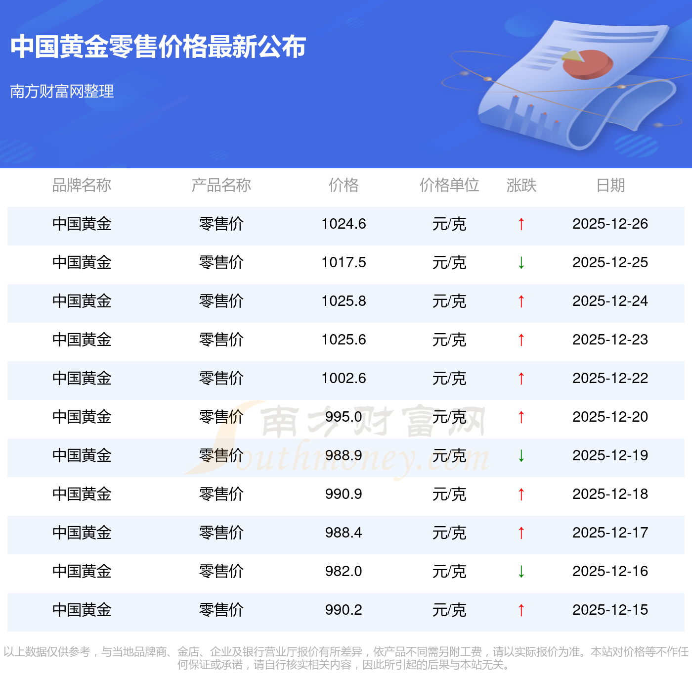 中國黃金今日零售價的最新標價為1024.6元/克。