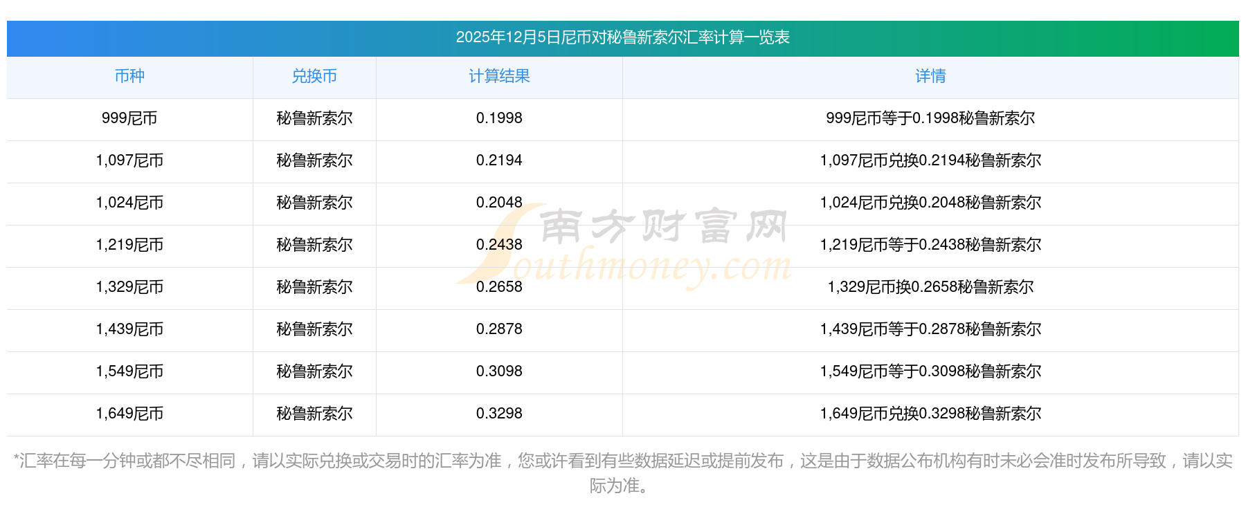 28尼幣換多少秘魯新索爾(2025年12月5日)
