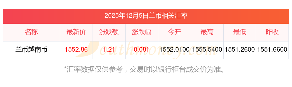 根據(jù)2025年12月5日匯率計算,ZAR兌換VND匯率最新價1552.860000: