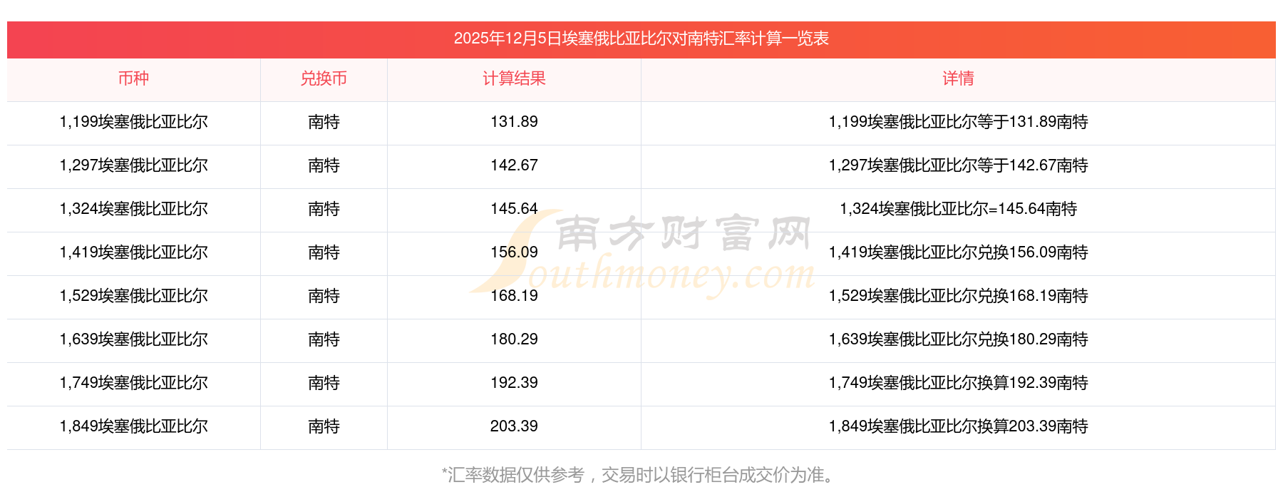 今日埃塞俄比亞比爾對(duì)南特匯率多少?_今日匯率查詢2025-12-05