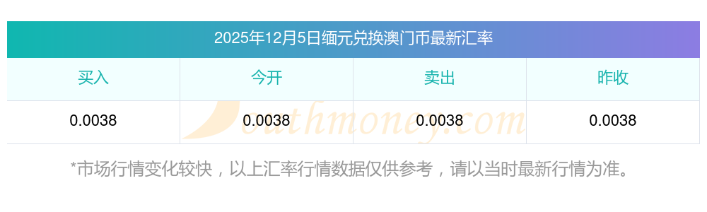 2025年12月5日緬元與澳門幣的兌換匯率計算如下: