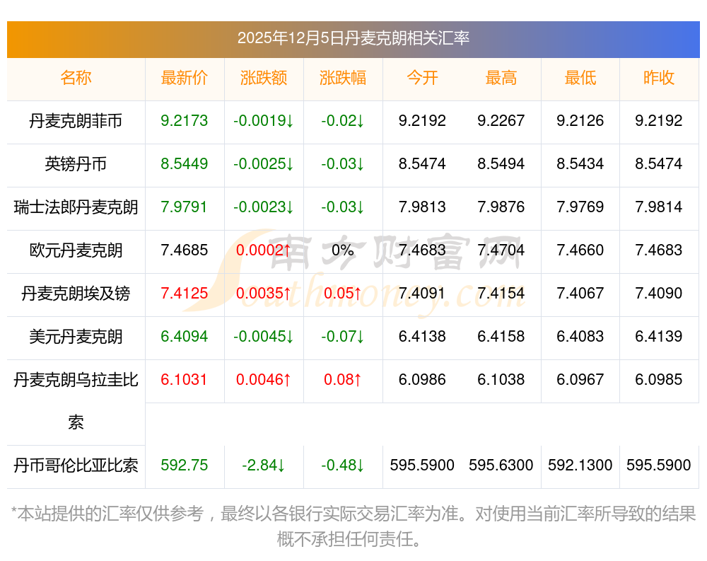 2025年12月5日丹麥克朗相關匯率查詢