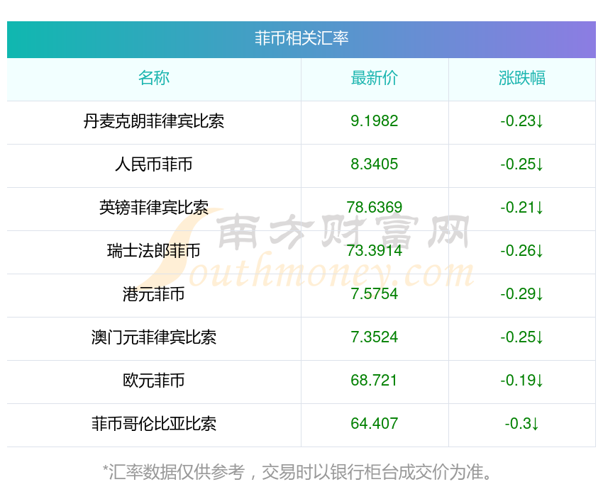 南方財(cái)富網(wǎng)為您提供菲幣對比索匯率最新價(jià)格詳情。
