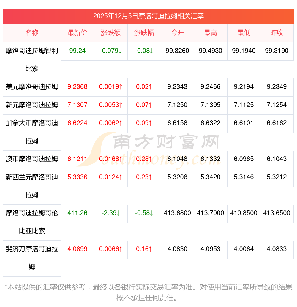貨幣兌換匯率 | 4萬摩洛哥迪拉姆轉(zhuǎn)換挪朗匯率計算表? 2025年12月5日