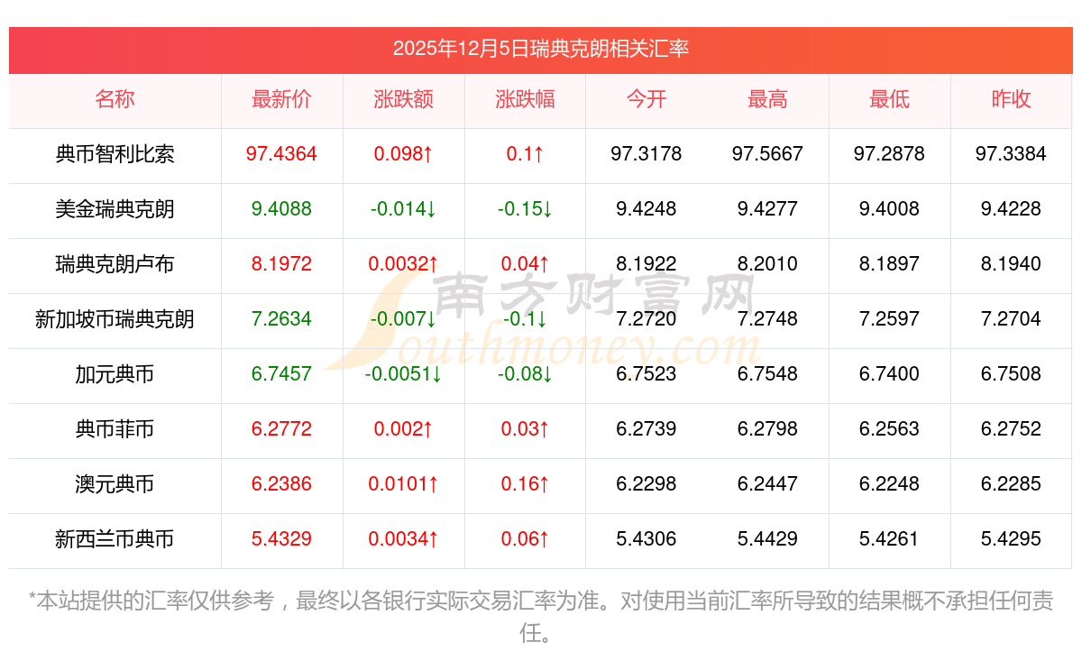 2025年12月5日瑞典克朗相關(guān)匯率查詢