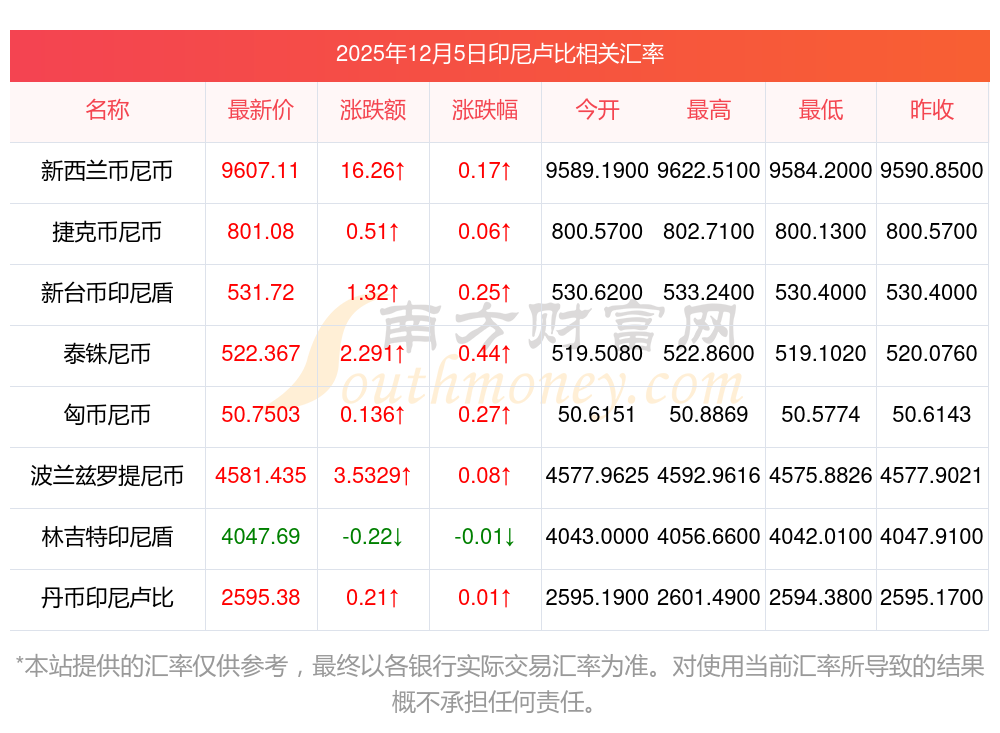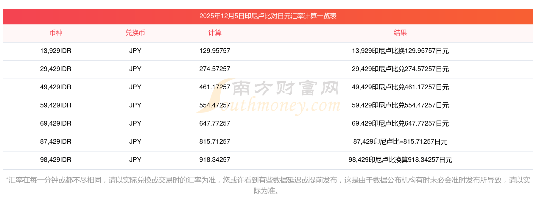 南方財富網為您提供印尼盧比對日元匯率最新價格詳情。