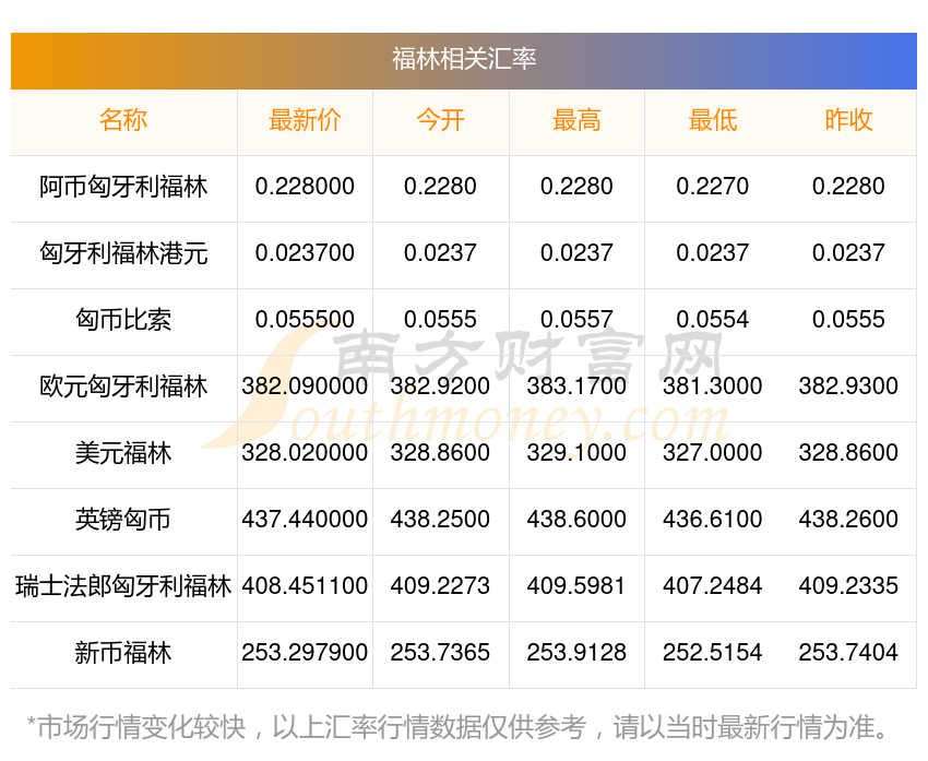 南方財富網(wǎng)為您提供福林對克朗匯率最新價格詳情。