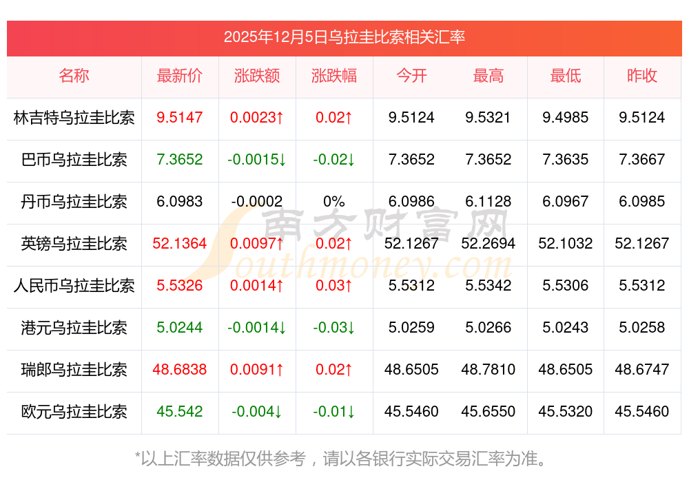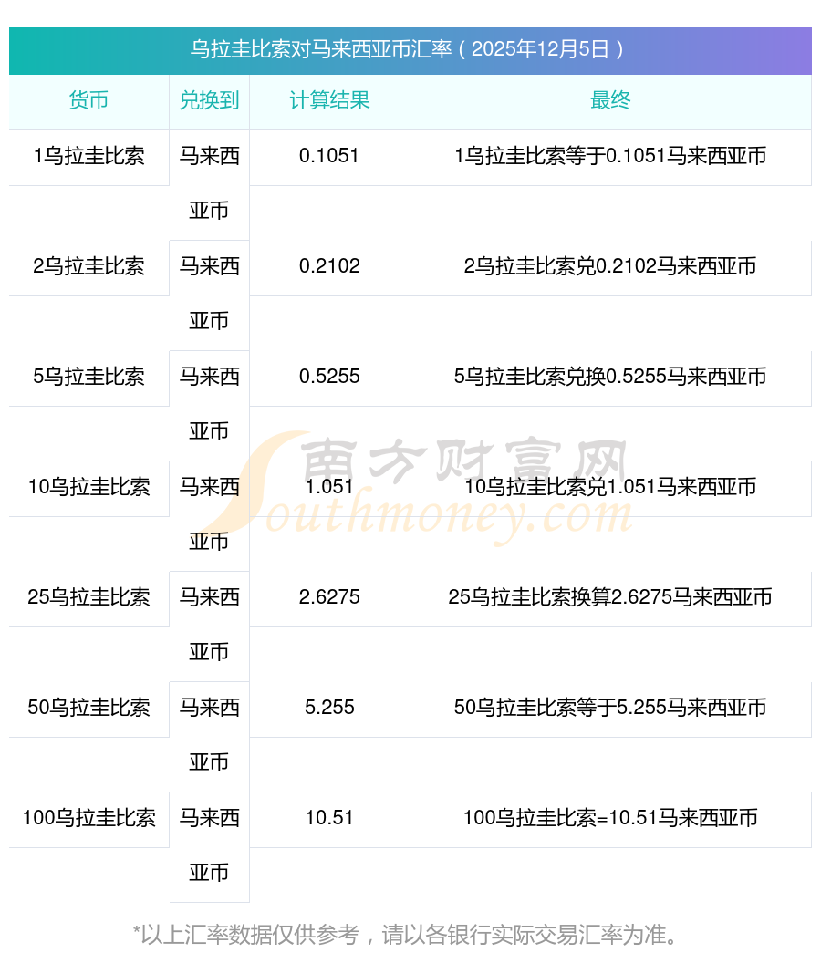 新匯率調(diào)整 今天9烏拉圭比索兌換馬來(lái)西亞幣匯率是多少? 2025年12月5日