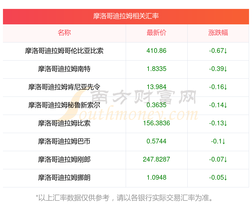 2025年12月5日摩洛哥迪拉姆相關(guān)匯率查詢(xún)