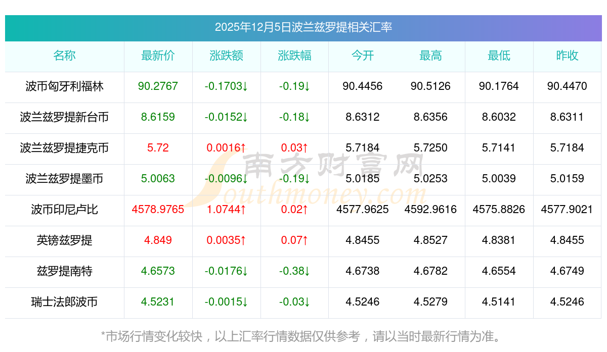 2025年12月5日波蘭茲羅提相關(guān)匯率查詢(xún)
