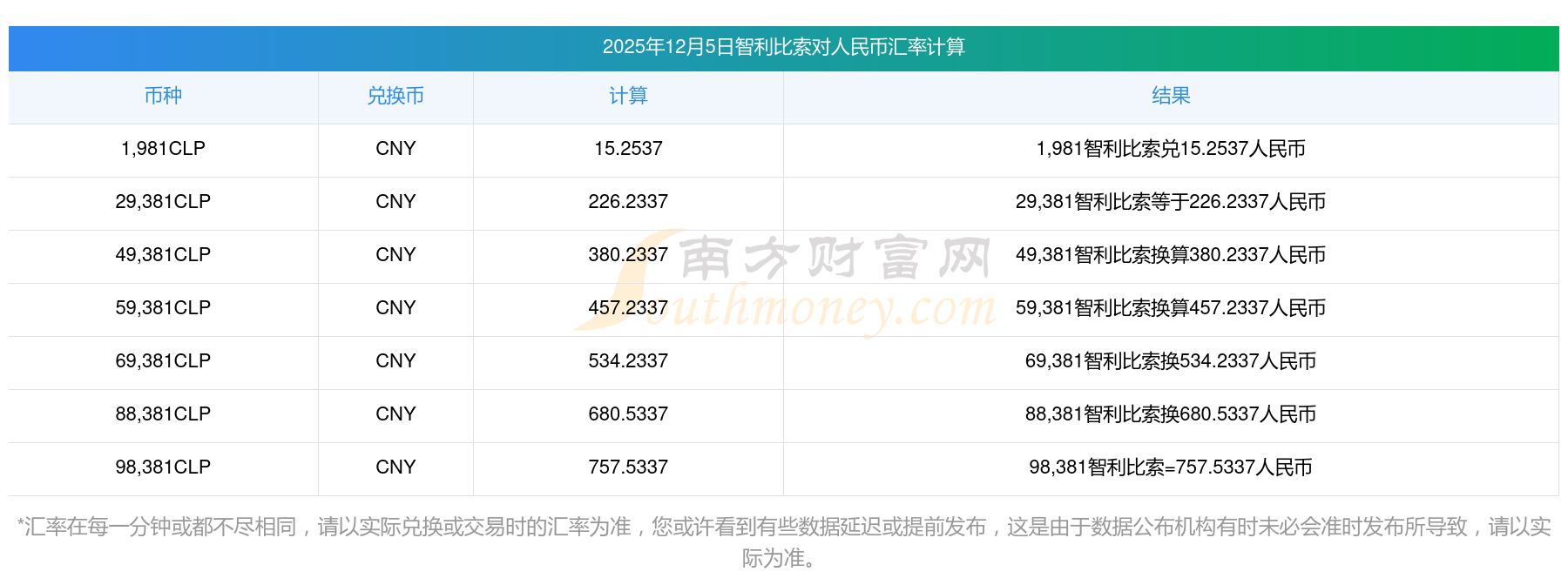 今天智利比索兌換人民幣匯率多少_不同貨幣兌換比例(2025/12/05)