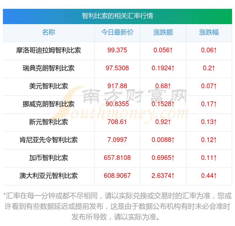 南方財(cái)富網(wǎng)為您提供智利比索對人民幣匯率最新價(jià)格詳情。