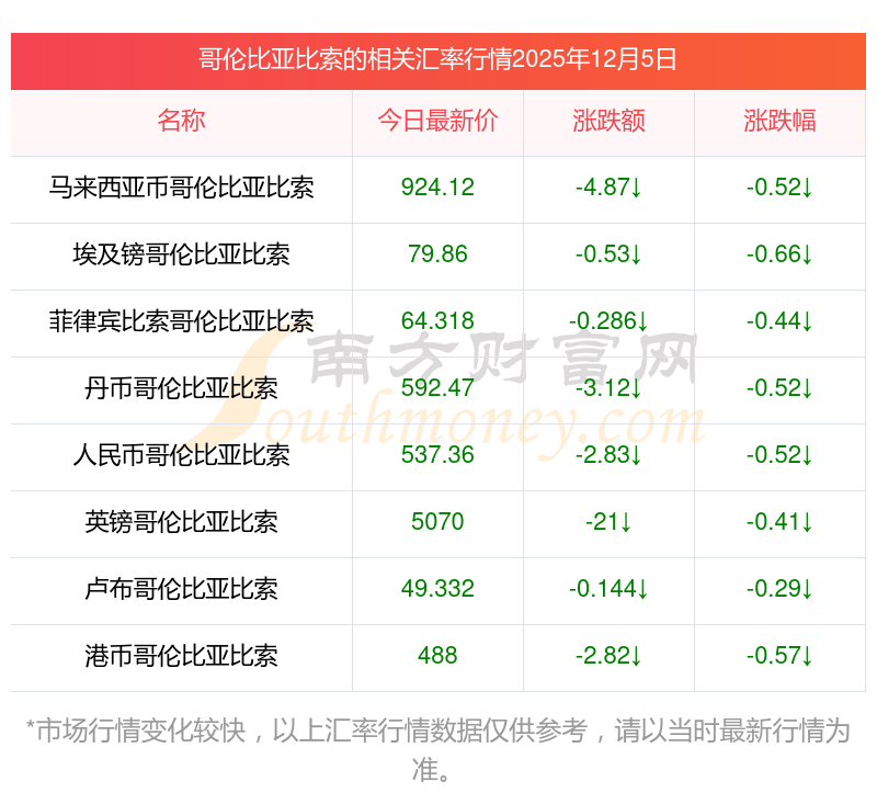 2025年12月5日哥倫比亞比索相關(guān)匯率查詢