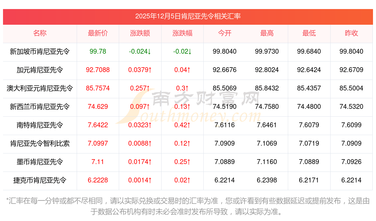 2025年12月5日肯尼亞先令相關(guān)匯率查詢
