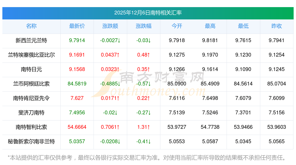 2025年12月6日南特相關(guān)匯率查詢