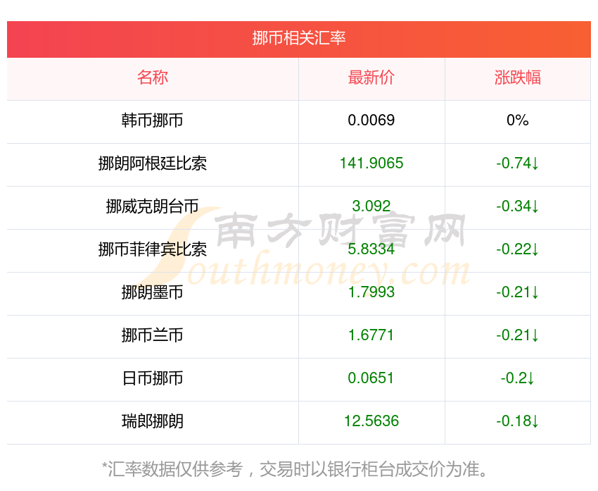 2025年12月6日挪幣相關(guān)匯率查詢