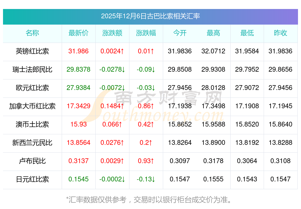 2025年12月6日古巴比索相關(guān)匯率查詢