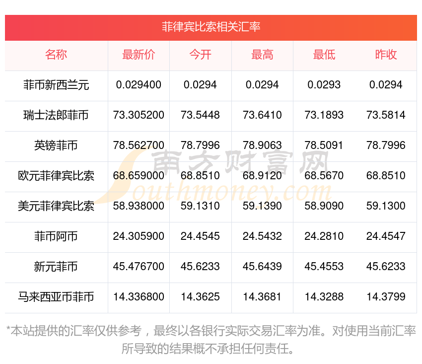 2025年12月6日菲律賓比索相關(guān)匯率查詢(xún)