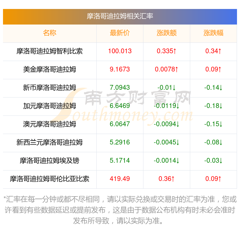 南方財(cái)富網(wǎng)為您提供摩洛哥迪拉姆對(duì)秘魯新索爾匯率最新價(jià)格詳情。