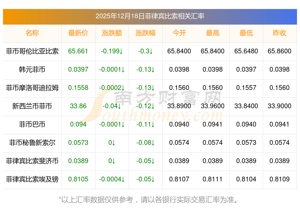 2025年12月18日菲律賓比索相關(guān)匯率查詢
