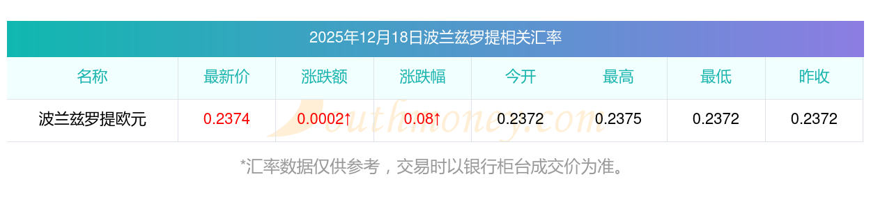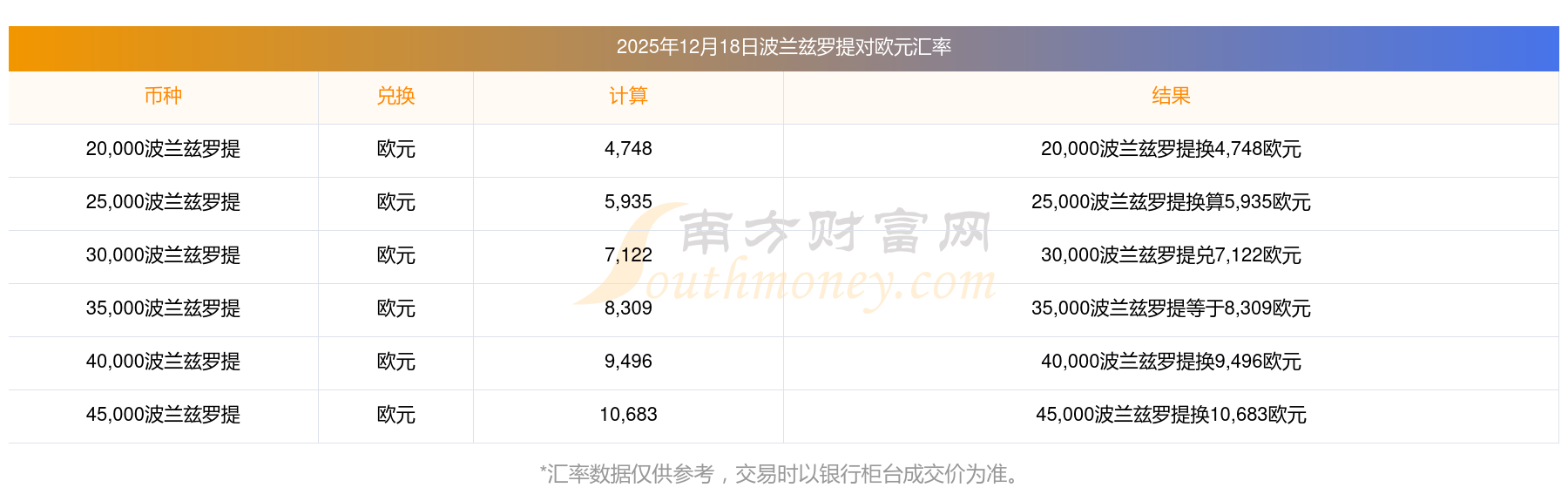 今天15波蘭茲羅提對歐元匯率計算|外匯兌換12-18