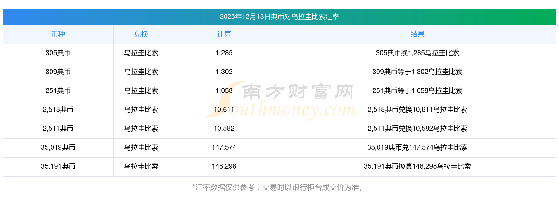 今日結(jié)匯行情:今日典幣對(duì)烏拉圭比索匯率是多少?12-18