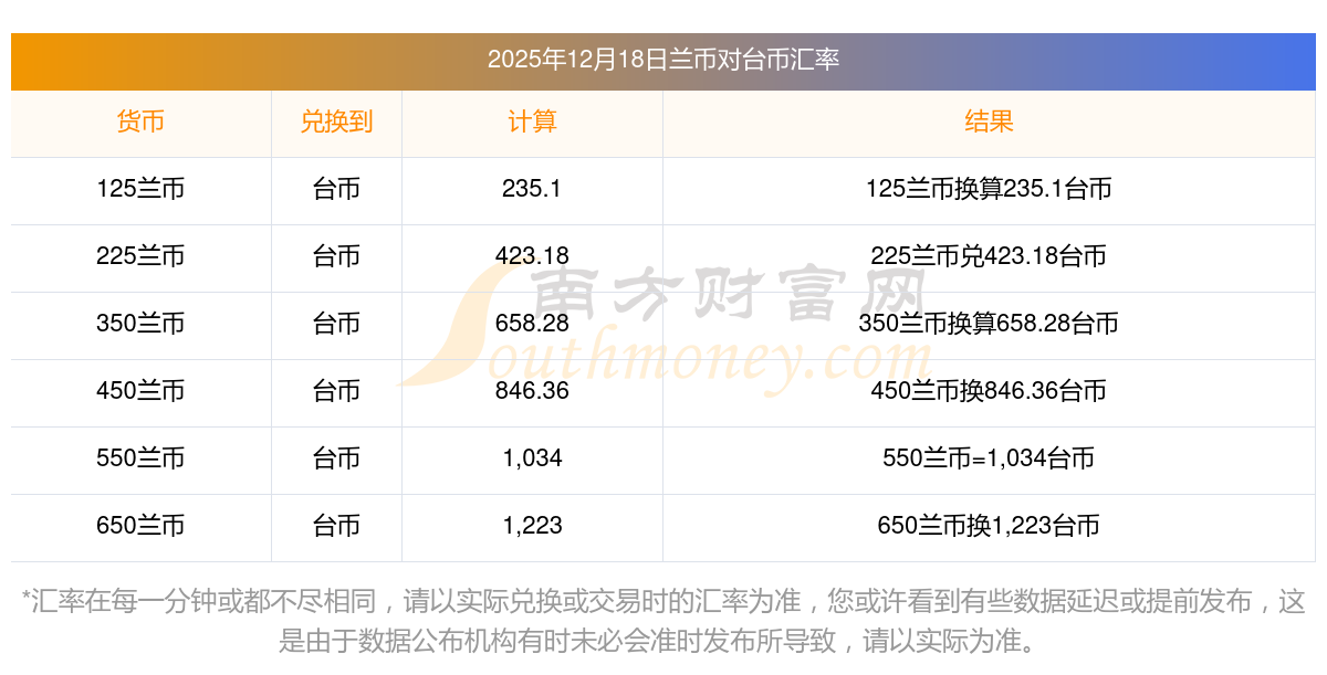 今日蘭幣對臺幣匯率多少?如何兌換的?12-18