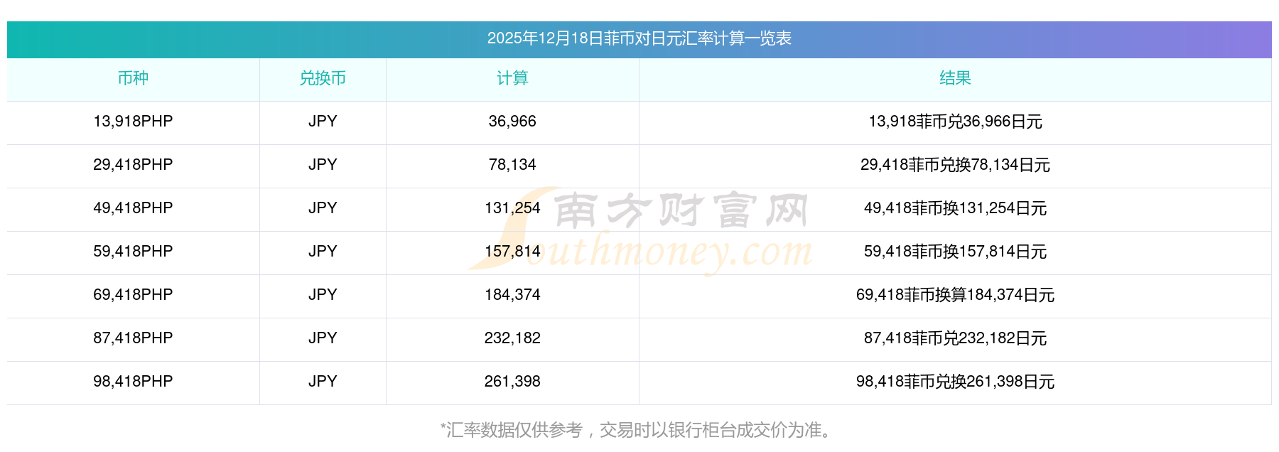 南方財富網(wǎng)為您提供菲幣對日元匯率最新價格詳情。