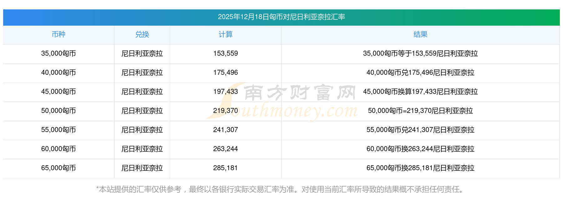 今天匯率更新!2025年12月18日1匈幣兌換尼日利亞奈拉匯率行情