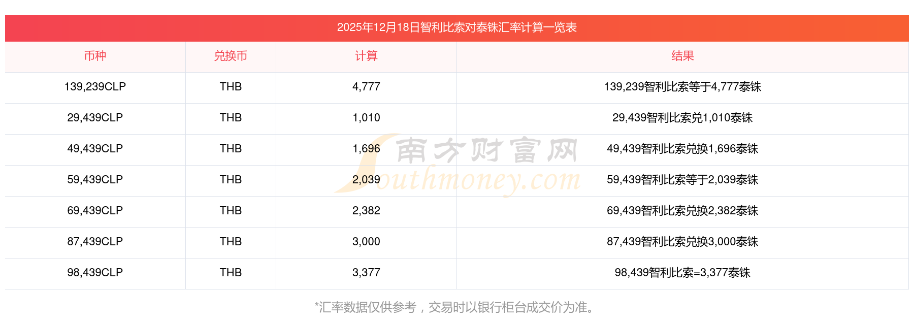 智利比索轉(zhuǎn)換泰銖今日實時匯率? 12-18