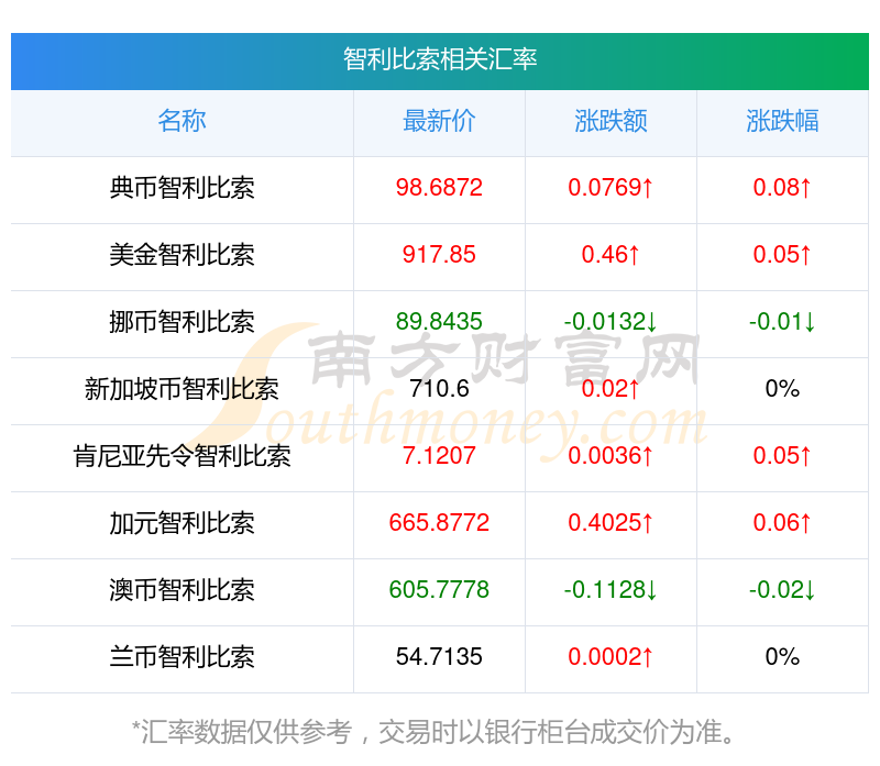 南方財富網(wǎng)為您提供智利比索對泰銖匯率最新價格詳情。