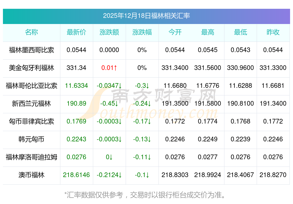 南方財富網(wǎng)為您提供福林對哥倫比亞比索匯率最新價格詳情。