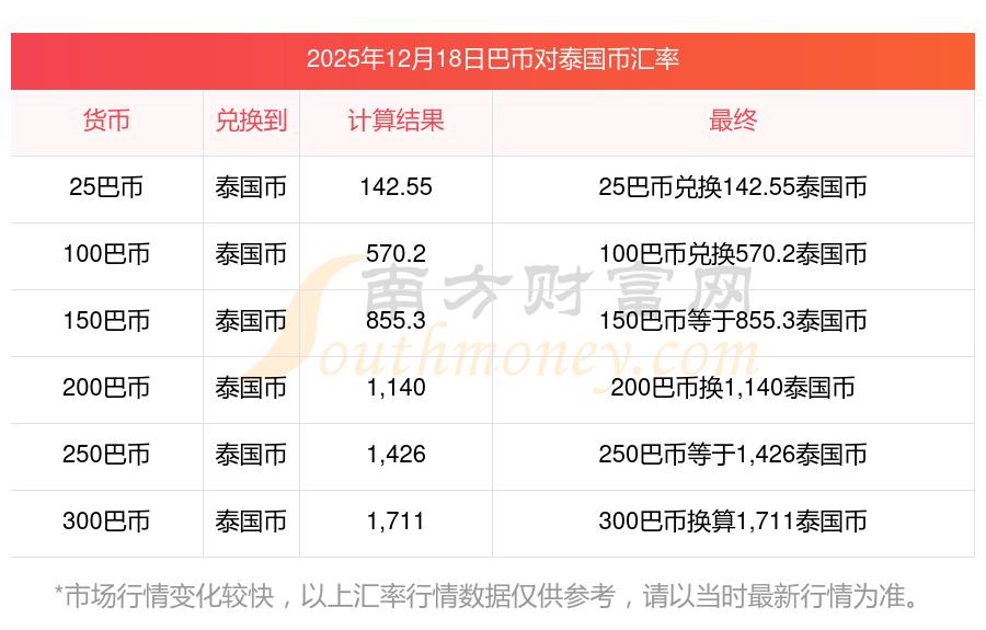 今天110巴幣兌換泰國(guó)幣是多少?2025年12月18日