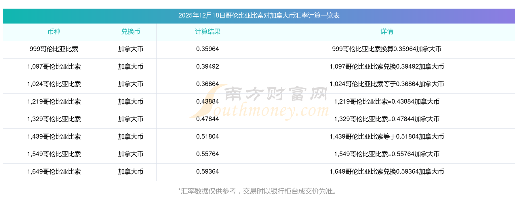 今日匯率調(diào)整最新消息 哥倫比亞比索兌換加拿大幣匯率是多少2025-12-18