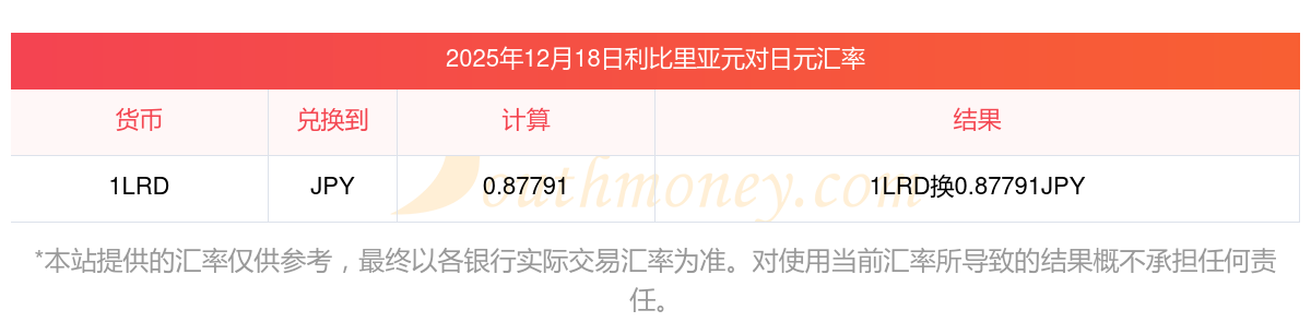 今日利比里亞元對日元匯率多少?利比里亞元匯率行情?12月18日