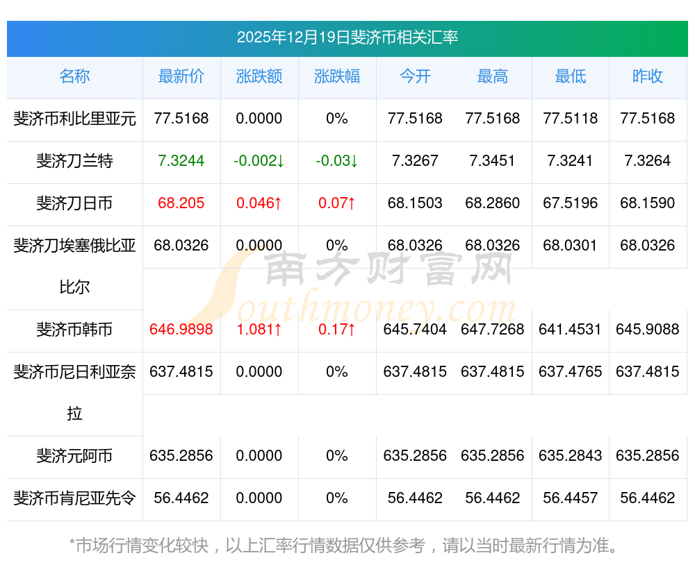 2025年12月19日斐濟(jì)幣相關(guān)匯率查詢