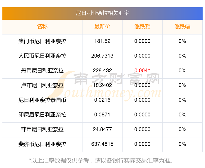 南方財(cái)富網(wǎng)為您提供尼日利亞奈拉對泰國幣匯率最新價(jià)格詳情。