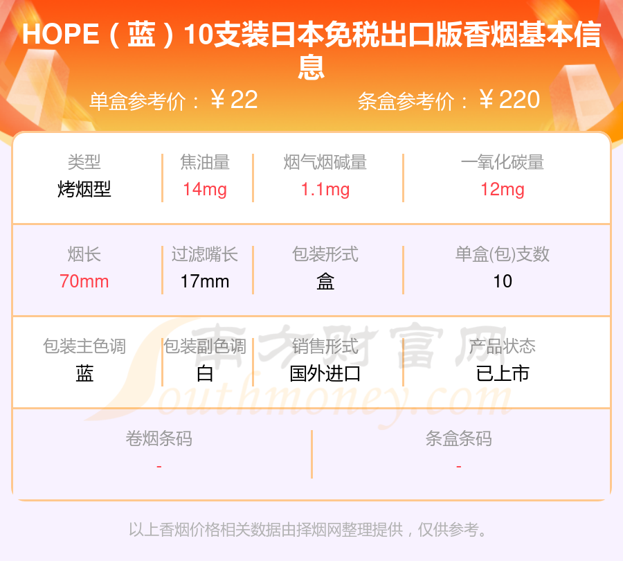 2、HOPE(藍(lán))10支裝日本免稅出口版