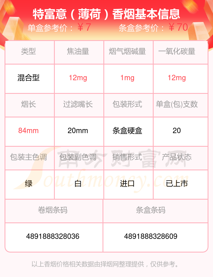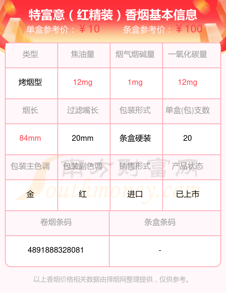擇煙網(wǎng)為大家盤點了特富意香煙煙堿低于4mg的,分別有特富意(紅精裝)、特富意(薄荷)等,具體價格如下:
